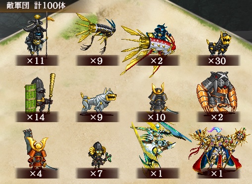 | 眼鏡付兜は城娘を優先的に攻撃する特性を持ち、その中でも遠隔城娘を最も優先します。 ※上記の攻撃特性は、計略による攻撃優先順の変更の影響を受けません。 また、攻撃を与えた対象にステータス異常:暗闇を付与します。 <暗闇の効果について> 効果時間中、攻撃範囲が大幅に減少。 |