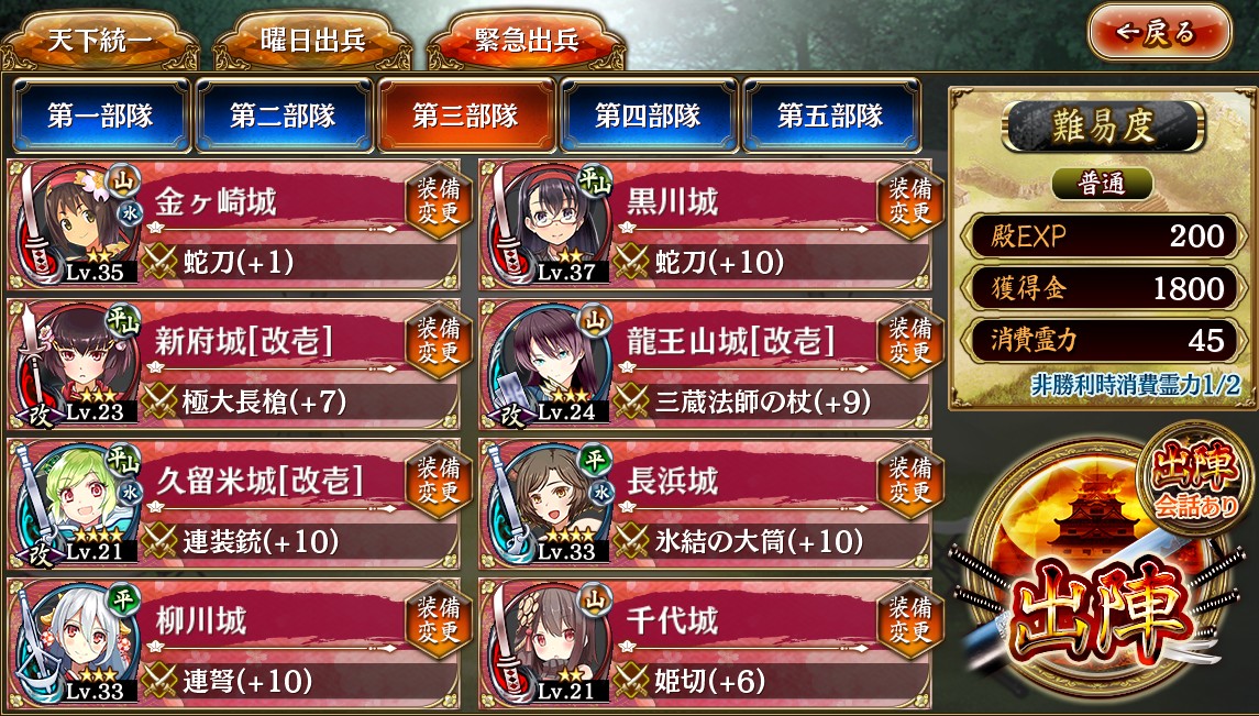 クリティカルという不確定要素がないから、しっかりLvを上げておけば攻略の参考動画、画像と似たような役目やポジションの城娘で対応出来るようになるしね。一度問題なく対応出来ればもう不安要素はない。いやホントクリティカルがなくてよかった・・・人によってはあった方が面白味が増すんだろうけど --