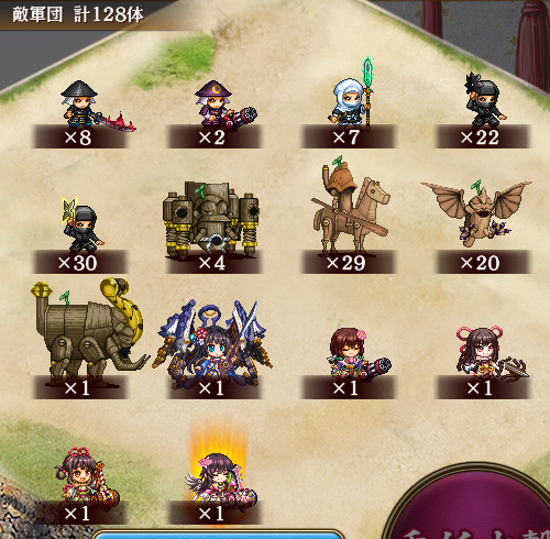 | 今回登場の敵城娘は、互いの特殊特技により強化されています。 |