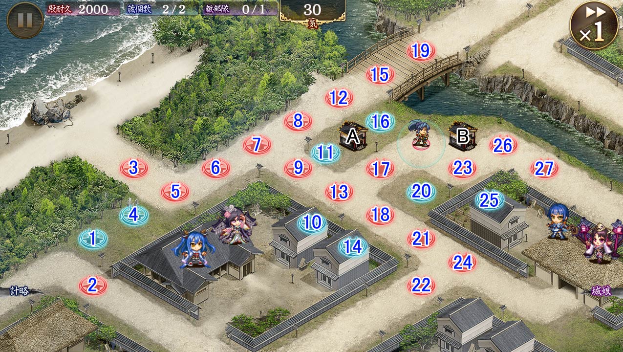 | 小倉城: 自身の攻撃速度が25%上昇 扇城: 射程内の敵軍ユニットの攻撃が50上昇、 射程内の殿側ユニットの与ダメージが20%低下 |