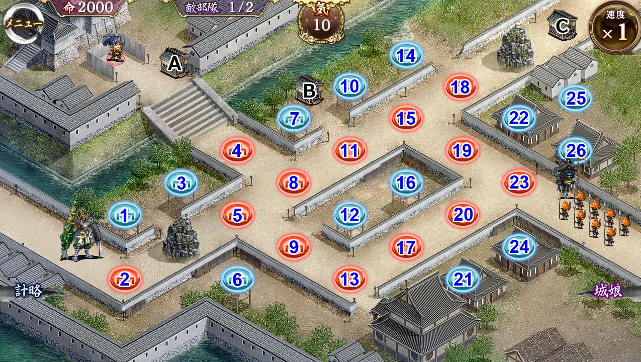 攻略速報いらないかもしれんが、念のため。まず第一陣を配置:18槍 16鈴 24弓 22大砲 20槍/刀。ここまで置いて、18槍と24弓を最大化。続いて1w中に第二陣も配置していく:1札/杖 6札/杖 3札/杖/銃(回転砲系装備)。自陣右翼(マップ左方)はここまで厚くしなくて大丈夫だと思う。 --
