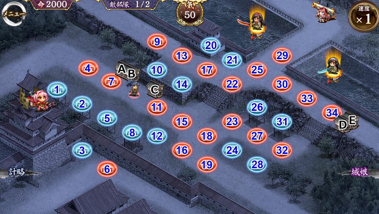 うちは難しいがクリアできなくて、五稜郭で防御上昇、聚楽第で殲滅(計略)と対飛行と、安定感の大阪城。地形不一致だけど活躍してもらい、浜松も封印してたんだけど投入して勝てましたよ。攻略できた感はないけれど、楽しかったのでよしとしよう。地形不一致とはいえほとんどの平山大砲じゃ上届かないし範囲を考えるなら平はありかなと思った。(残りは臼杵に水府にひこにゃんにカルカソンヌ) --