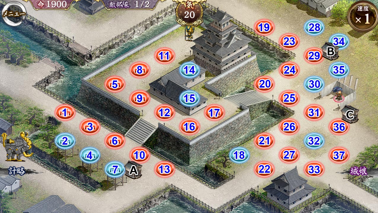 象処理で2、蔵防衛で10を詰めたら、残りは殿周りに集めておける。歌舞使うなら30において32が入ればたぶん大丈夫。 --