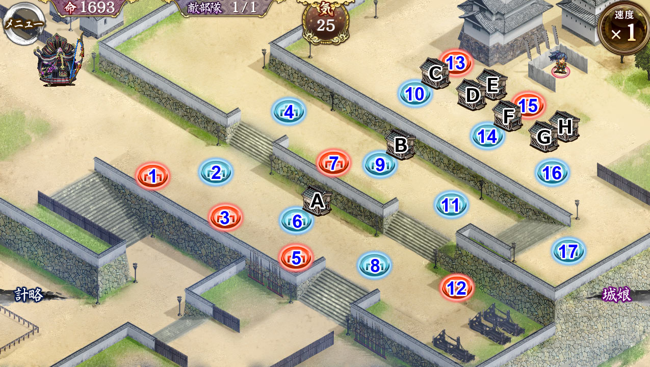 難しい、☆5以下、計略不使用でいろいろ試してみたけど、Lv75の平山遠距離3人、Lv60平山近接4人、Lv60平歌舞とかでも全蔵防衛が安定しない。離でこのレベルは何か戦術を間違えているような気がするが、もしかしたら絶壱と3倍速を実装したから今回の離は周回マップ扱いではなく挑戦的なマップにしたのかもしれない。 --