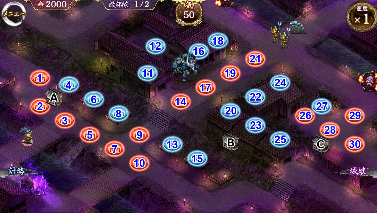 。最近このゲーム、まともにプレイしてなかったがやってみると存外悪くない。妖怪マップは歌舞依存が強いから好きではないが今回ぐらいのマップなら歌舞無しでも問題ないのは助かる。高耐久の妖怪が出てくるとどうしても盾で止めて歌舞付けたくなるがこれだけ馬鹿正直に真っ直ぐ歩いて来るだけだと札・鉄砲でハメるだけだ。しかし相変わらず宇土薬はいいものだな。 --
