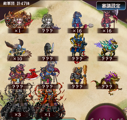 | <無間地獄効果> 無間地獄では『特定の敵』を倒すまで一部の敵が無限に登場します。 この合戦では『[裏]大宰府』が特定の敵になります。 |
