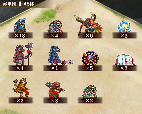 ![]() ![]() 牛頭 馬頭  | <妖怪牛頭と馬頭の補足>  牛頭は近接攻撃による被ダメージを3割軽減、 馬頭は遠隔攻撃による被ダメージを3割軽減します。  |