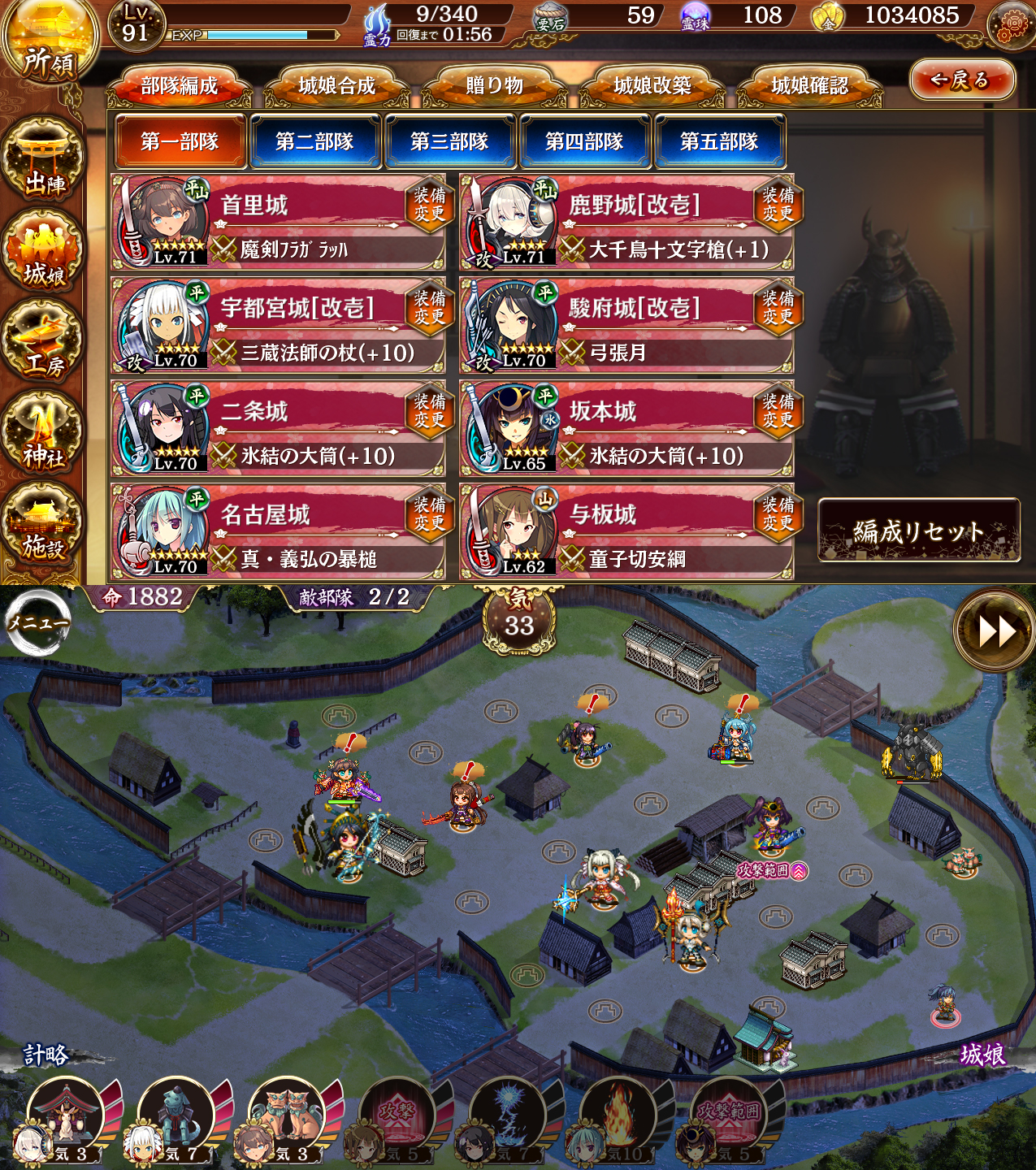 ひこにゃんや聚楽第動員してもちょっと難しかった。初回に完全攻略出来た殿はかなりの上級者だろうな --