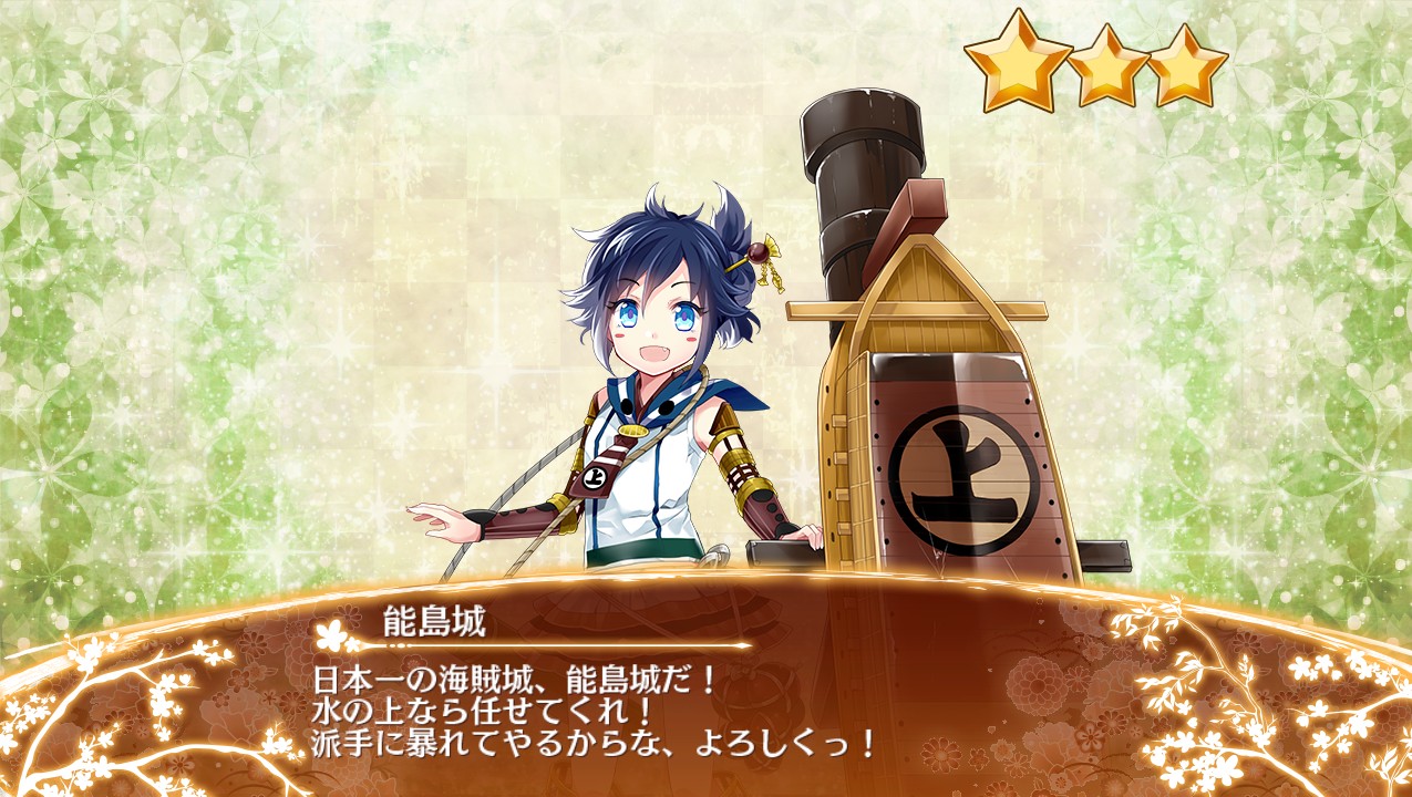 中レアの水属性鉄砲で、未改築特技に射程内防御低下22%を持っていたのは長浜城、雑賀城、能島城の3人である。