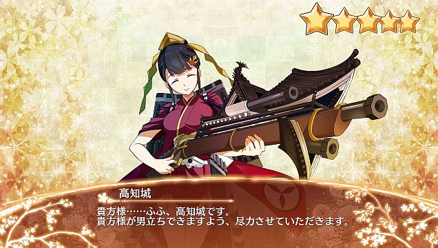 王子からの殿で今まで無課金で溜まった石50個を割っていたから星5だけだったが今回の熊本城が来て戦力が格段に上がった。