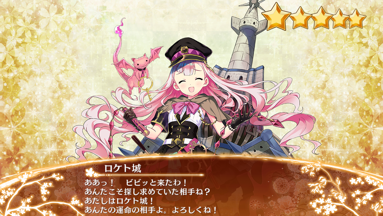 【デザイン】 ヴァイオリン(クリックで表示) 通常姿でキャラを挟むように位置しているヴァイオリンを象った紫色の器具のこと。中世ヨーロッパで頻繁に使われていた拷問具であり、通称やかまし女のヴァイオリン、ガミガミ女のヴァイオリンなどとも呼ばれている。一番大きい穴に首を、残りの穴に両手を拘束して使用する。当時は女性が口を多く利くことすら罪とされていたため、そのような者を拘束する目的で使用されていた。 御嬢(クリックで表示) 大きな襟にたっぷりと膨らんだ裾が特徴的な服装は、チェコのモラヴィア地方の民族衣装がモチーフ。また、頭につけている赤い花は薔薇、黄色い花は菩提樹であり、どちらもチェコの国花である。 【特技・計略】 ストラカカル(クリックで表示) ロケト城に住んでいるとされる小人の一人。 ゴッドシタイン(クリックで表示) ロケト城に住んでいるとされる小人の一人。 「シャルカンの炎」「塔の火竜」(クリックで表示) シャルカンは、ロケト城の塔に住んでいると言われるドラゴン。 【セリフ】 現実の城情報