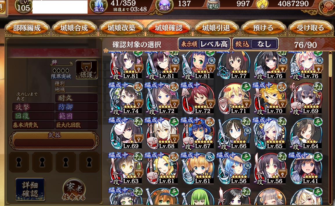 基本無料のゲームだし、程々にやるのが一番よ。そのためにも俺は幅広く育てつつレベルはカンストさせるとすぐ飽きるのっわかってるから上げすぎずでなんだかんだ続いてる。こういっちゃなんだか艦これよりも続いてしまった…。 --