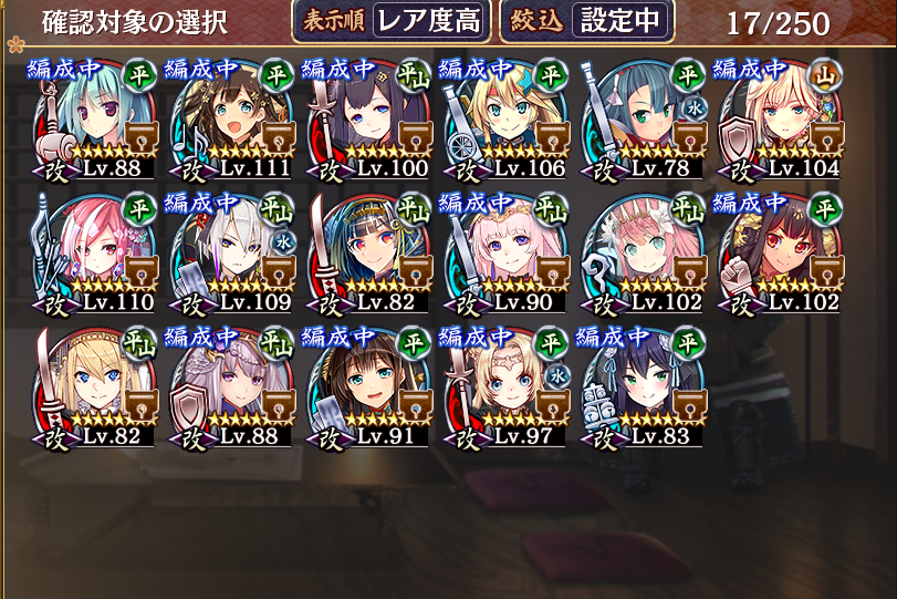 レア度の高い順から城娘を10体引退して効果発動しそうだな! --