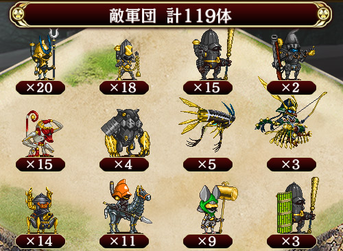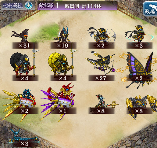 • 難易度は4のがずっと難しい、左から来る槍は角で蔵殴ってくるので注意する位。雷刀も正面から単独でやってくるので特に気にしなくても倒せる -- 2023-05-20 (土) 08:38:15