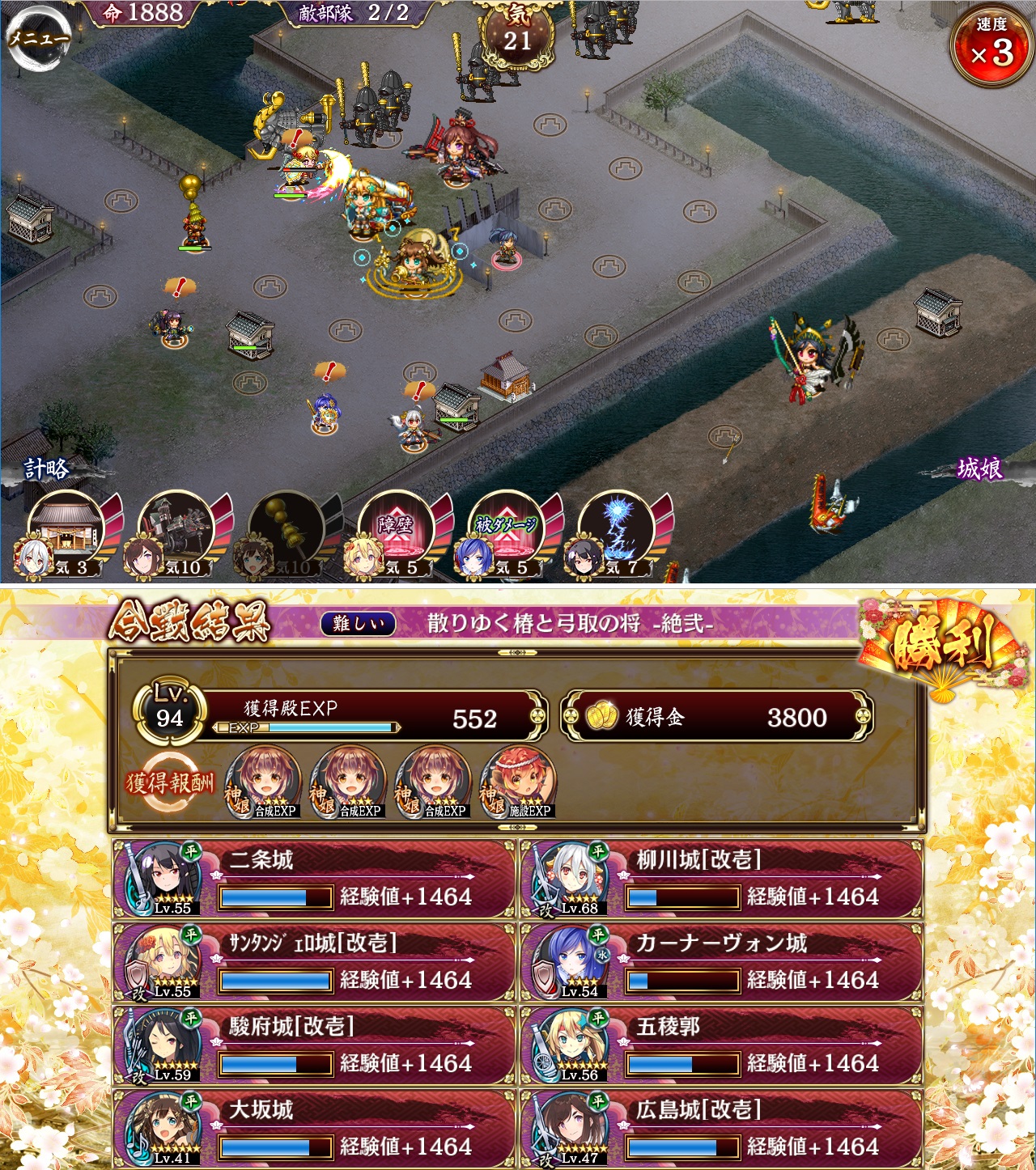 詳細なアドバイスありがとうございます。2月から始めたので深志城も松本城もカナボンもいないのできついです。なんとかアドバイスどおり頑張ってみます。ダメだったらレベル上げします。 --