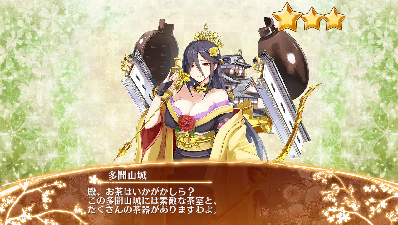 城娘ステータス: 全城娘一覧(刀 | 槍 | 槌 | 盾 | 拳 | 鎌 | 戦棍 | 双剣 | ランス | 弓 | 石弓 | 鉄砲 | 大砲 | 歌舞 | 法術 | 鈴 | 杖 | 祓串 | 本 | 投剣 | 鞭 | 陣貝 | 軍船 | 茶器 | その他 || 平属性 | 平山属性 | 山属性 | 水属性 | 地獄属性 | 無属性)初期ステータス 装備品: 刀 | 槍 | 槌 | 盾 | 拳 | 鎌 | 戦棍 | 双剣 | ランス | 弓 | 石弓 | 鉄砲 | 大砲 | 歌舞 | 法術 | 鈴 | 杖 | 祓串 | 本 | 投剣 | 鞭 | 陣貝 | 軍船 | 茶器 | その他 || 施設 || 消耗品 | 城娘: 特技(攻撃系 / 防御系 / 弱体化他) | 所持特技 | 編成特技 | 大破特技 | 特殊攻撃 | 特殊能力 | 武器切替 | 計略(伏兵以外 / 伏兵) | 都道府県別 | 令制国別 | 季節限定城娘 | 特定カテゴリ |