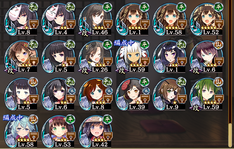 主戦場っていうか、攻撃が厳しいポイントが2~3収まればだいたい十分仕事するかな、最悪刀狩だけ遠征させてもいい --