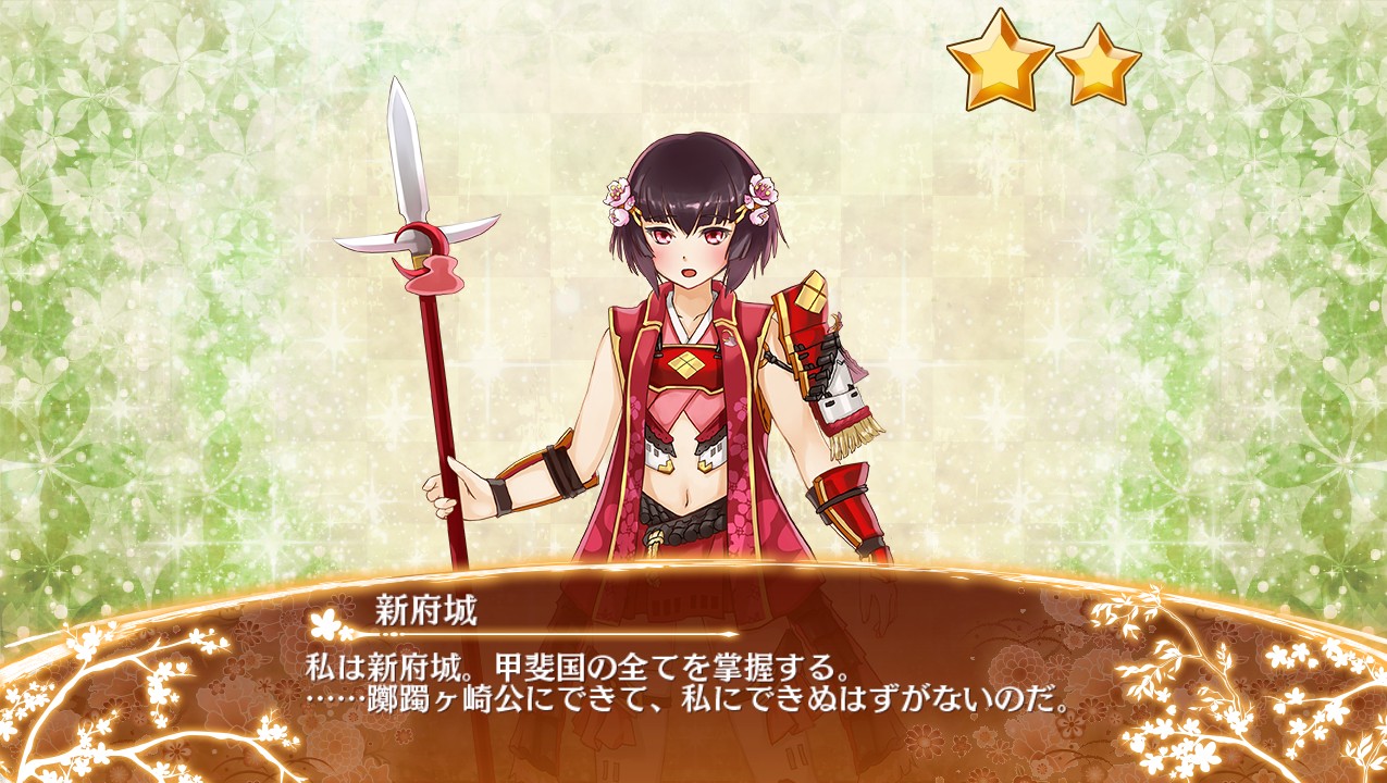 城娘ステータス: 全城娘一覧(刀 | 槍 | 槌 | 盾 | 拳 | 鎌 | 戦棍 | 双剣 | ランス | 弓 | 石弓 | 鉄砲 | 大砲 | 歌舞 | 法術 | 鈴 | 杖 | 祓串 | 本 | 投剣 | 鞭 | 陣貝 | 軍船 | 茶器 | その他 || 平属性 | 平山属性 | 山属性 | 水属性 | 地獄属性 | 無属性)初期ステータス 装備品: 刀 | 槍 | 槌 | 盾 | 拳 | 鎌 | 戦棍 | 双剣 | ランス | 弓 | 石弓 | 鉄砲 | 大砲 | 歌舞 | 法術 | 鈴 | 杖 | 祓串 | 本 | 投剣 | 鞭 | 陣貝 | 軍船 | 茶器 | その他 || 施設 || 消耗品 | 城娘: 特技(攻撃系 / 防御系 / 弱体化他) | 所持特技 | 編成特技 | 大破特技 | 特殊攻撃 | 特殊能力 | 武器切替 | 計略(伏兵以外 / 伏兵) | 都道府県別 | 令制国別 | 季節限定城娘 | 特定カテゴリ |
