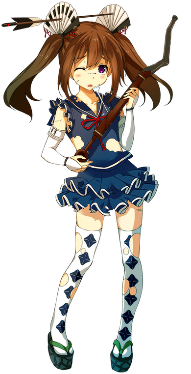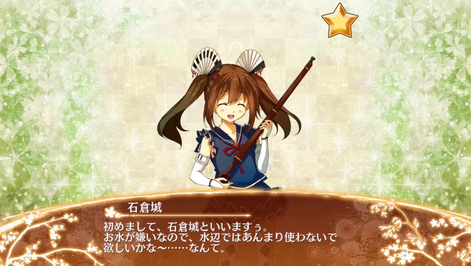 水着のような格好(旧城プロではよりスクール水着に近かった)をしているのは、利根川の氾濫により本丸・二の丸が破壊されたため。