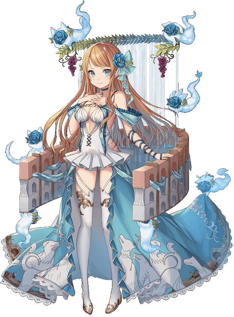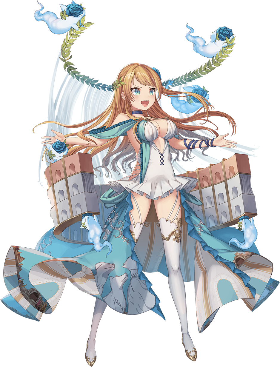 彼女の腰周りの造形物はカロリーノの水道橋を、スカートの柄はアクタイオンの噴水をモチーフにしていると思われる。
