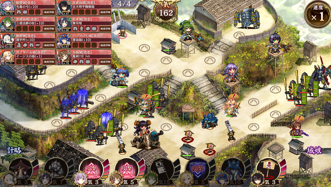 遠隔武器を優先的に巨大化しつつ、危ないところを巨大化。対明智回復のため立花山、観音寺、不夜は最大化にせずに最終ターンに突入。 --