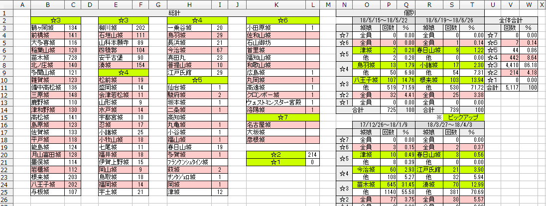 • 築城8回で3以上しかこないな、4も二つきたし、これは良いものですわ、ただ石がものすごい勢いで消えていく -- 2017-03-28 (火) 22:36:00