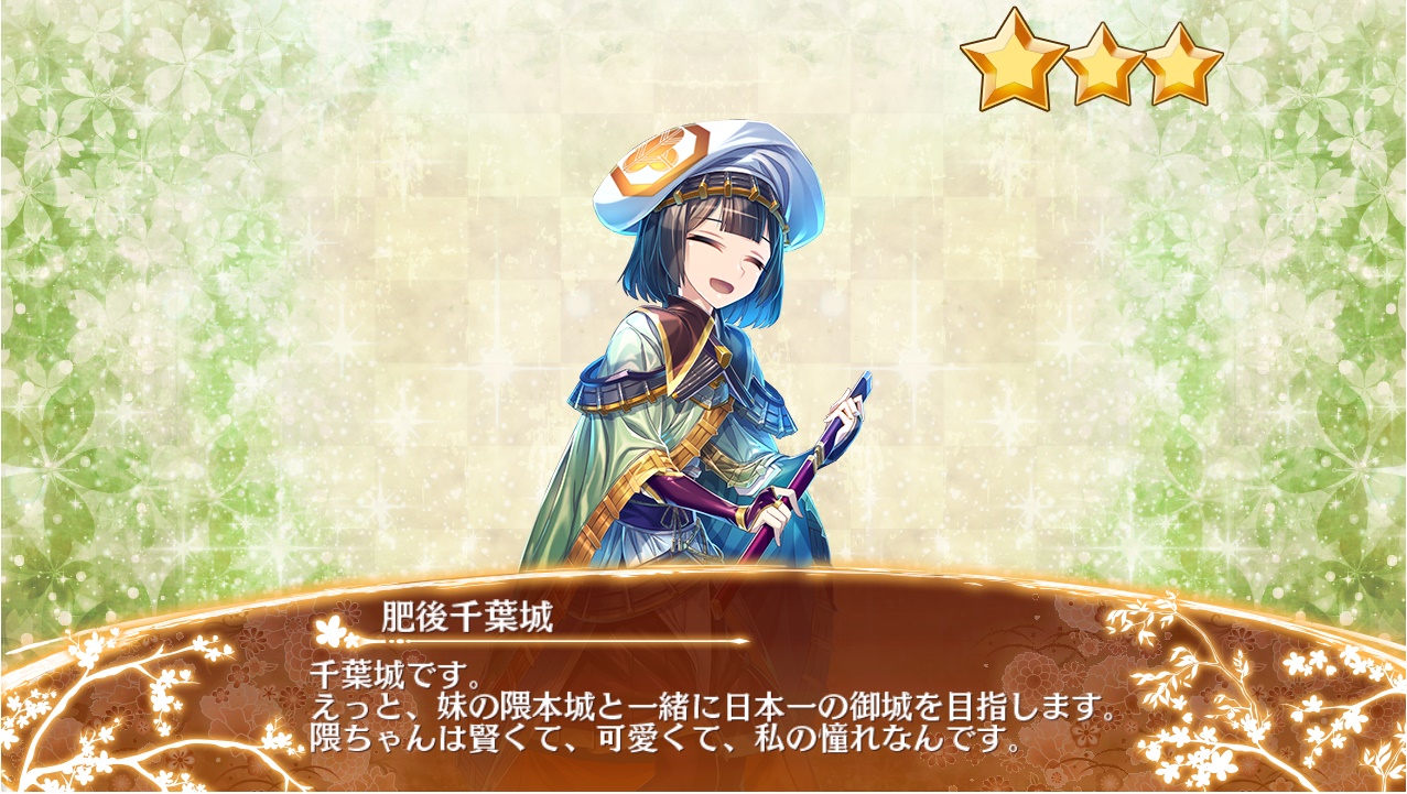 隈本城同様、配置時点で特技が発動するという特徴を持つ刀娘。
