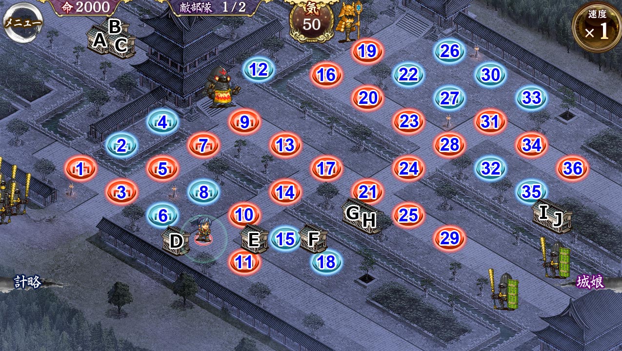 | A,B,C,D,E,F,G,H | 築城アイテム | [築城アイテム] 17~19個 / 合計136~152個 |