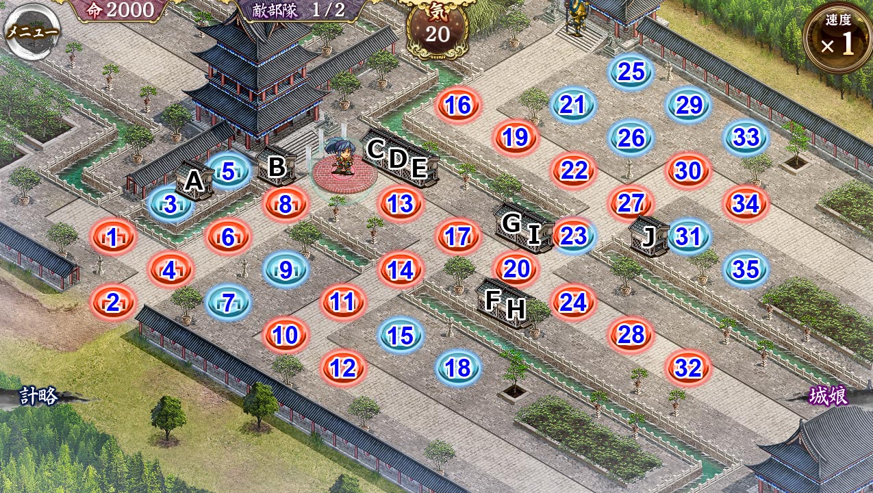 23槍 27近接 31遠距離 20近接 13盾 15鉄砲 9法術 7弓。60以上あれば盾は巨大化回復だけでも受けられると思う。呂布が盾まで行ったら9、13、15以外撤退して盾に霊力を使う。17に近接を配置して援護してもいい。 --