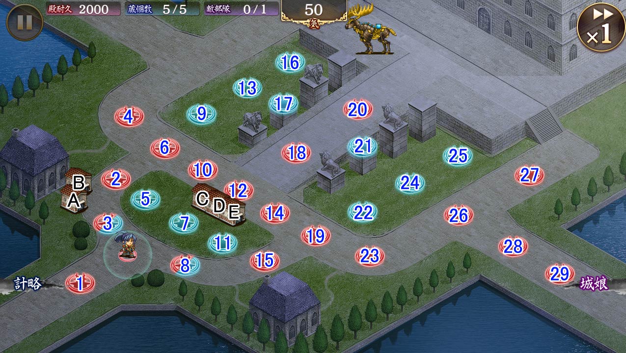 真似をして7を高島城にして一気に巨大化したら楽になりました。14槍を10に移せば蔵CDEは無傷でもいけました。 --
