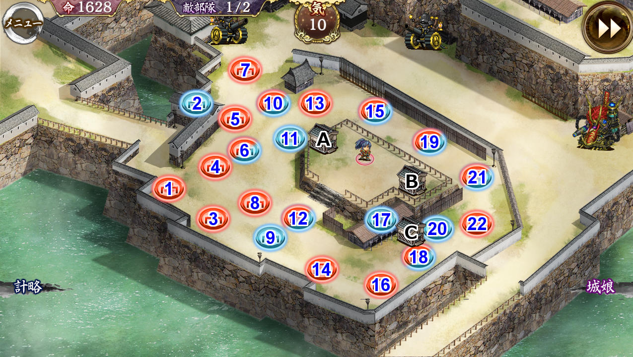 遠距離ユニットを置いて、動く前に三成や大砲たちを倒すだけの簡単なお仕事。 --