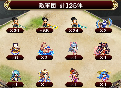 | 第一波に登場する 動物の音楽隊 は、全ての城娘の防御を30%低下させます。 ※複数いた場合、効果は重複しません。また、第二波になると消滅します。 |