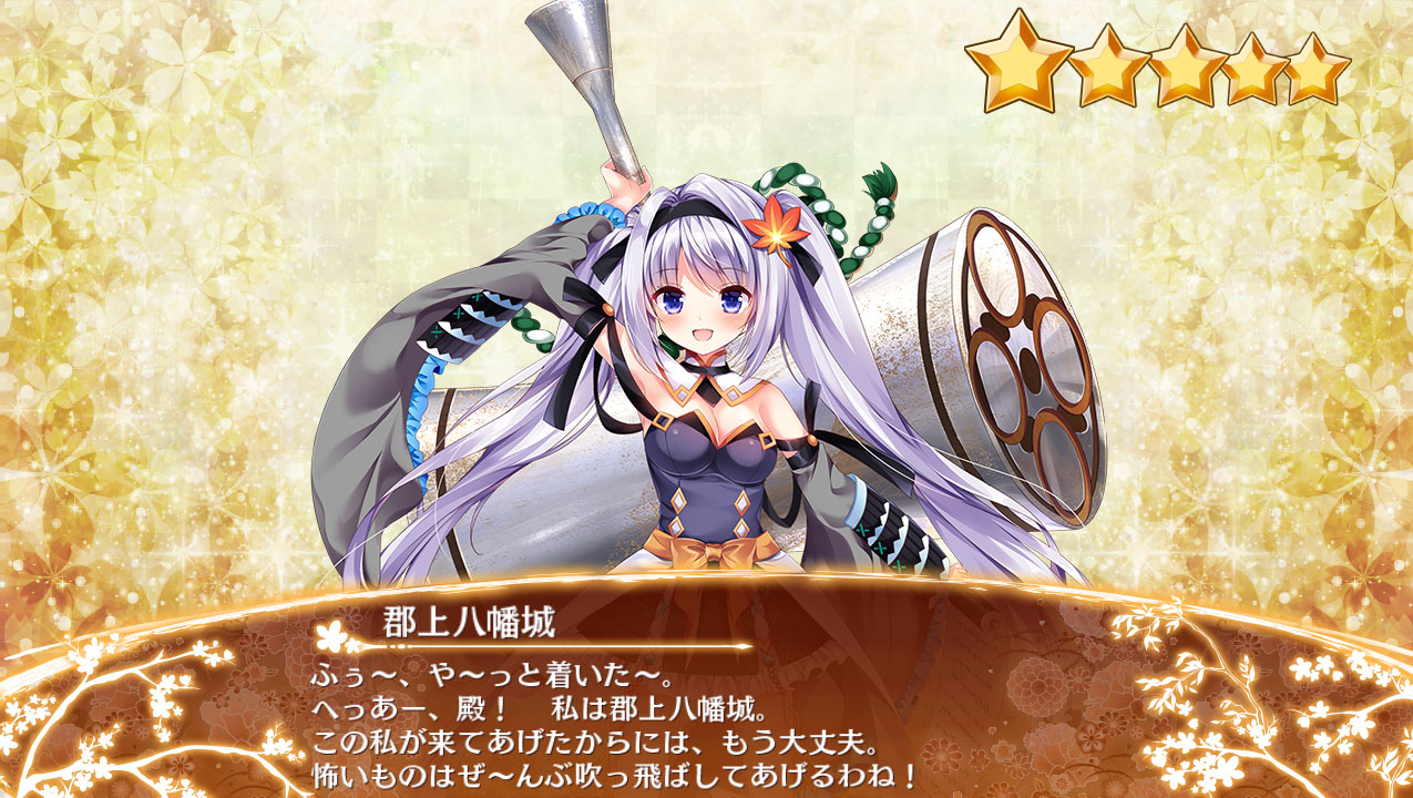 城娘ステータス: 全城娘一覧(刀 | 槍 | 槌 | 盾 | 拳 | 鎌 | 戦棍 | 双剣 | ランス | 弓 | 石弓 | 鉄砲 | 大砲 | 歌舞 | 法術 | 鈴 | 杖 | 祓串 | 本 | 投剣 | 鞭 | 陣貝 | 軍船 | 茶器 | その他 || 平属性 | 平山属性 | 山属性 | 水属性 | 地獄属性 | 無属性)初期ステータス 装備品: 刀 | 槍 | 槌 | 盾 | 拳 | 鎌 | 戦棍 | 双剣 | ランス | 弓 | 石弓 | 鉄砲 | 大砲 | 歌舞 | 法術 | 鈴 | 杖 | 祓串 | 本 | 投剣 | 鞭 | 陣貝 | 軍船 | 茶器 | その他 || 施設 || 消耗品 | 城娘: 特技(攻撃系 / 防御系 / 弱体化他) | 所持特技 | 編成特技 | 大破特技 | 特殊攻撃 | 特殊能力 | 武器切替 | 計略(伏兵以外 / 伏兵) | 都道府県別 | 令制国別 | 季節限定城娘 | 特定カテゴリ |