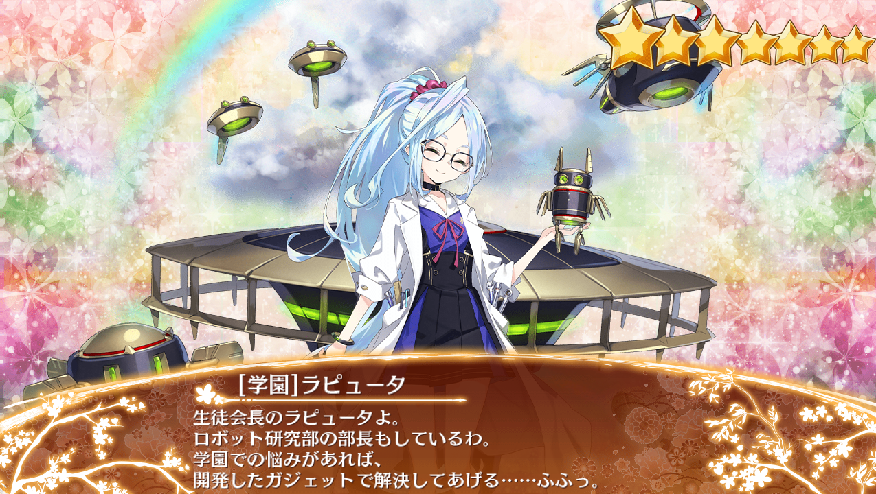 | 1 | 2320 | 400 | 99 | 201 | 0 | Skill:Attack 全てのマスに移動可能 [学園]ラピュータの攻撃が40上昇 |
