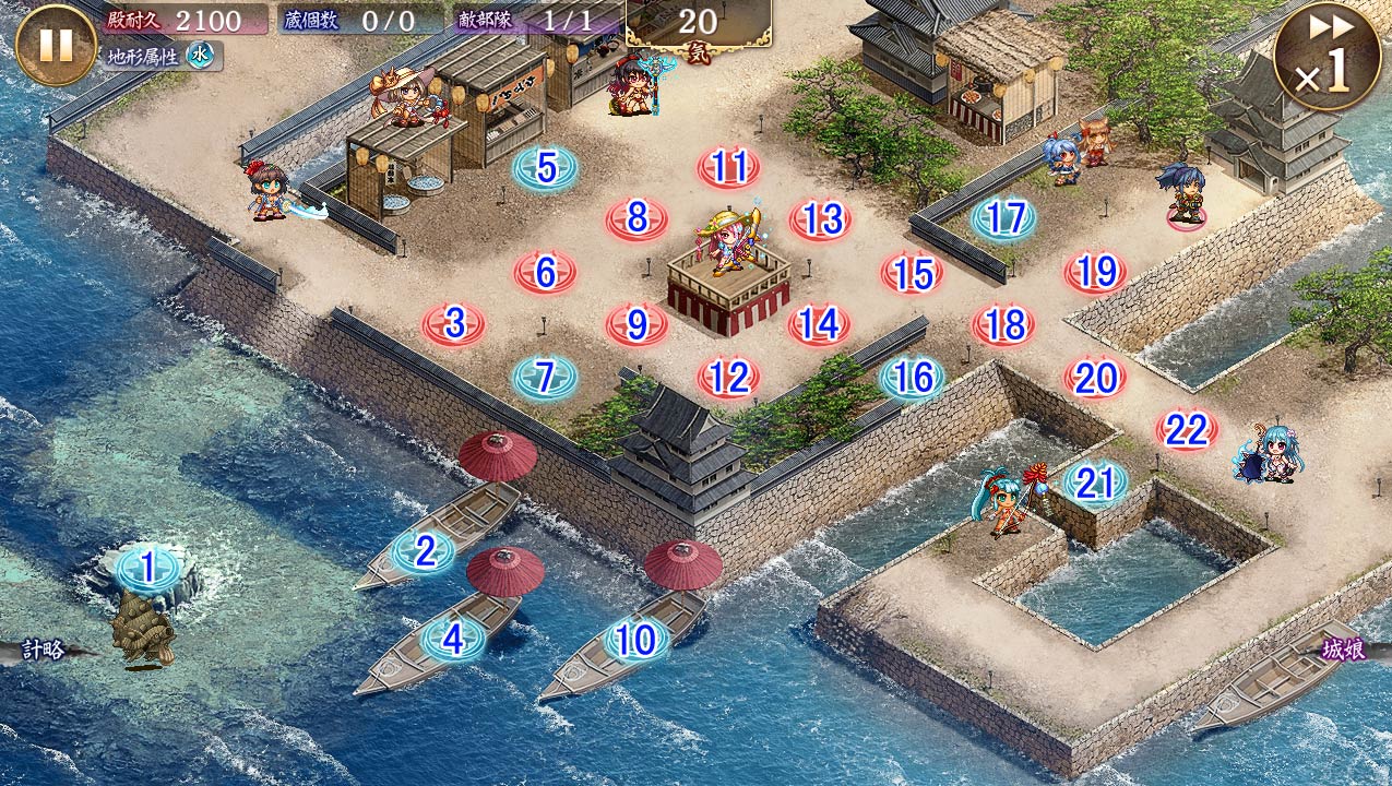 | [夏]延岡城の特技効果により、殿側ユニットの攻撃を20%低下します。 また、[夏]延岡城は攻撃を行わず、攻撃対象になりません。 その他の敵軍ユニットを全て撃破すると合戦勝利となります。 |