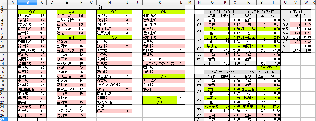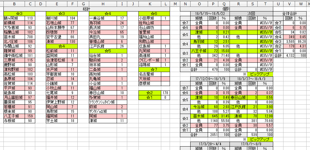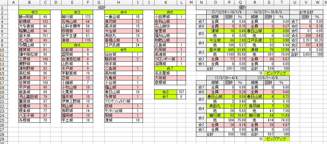 • 築城8回で3以上しかこないな、4も二つきたし、これは良いものですわ、ただ石がものすごい勢いで消えていく -- 2017-03-28 (火) 22:36:00