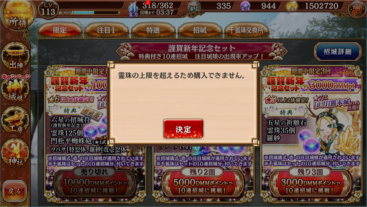 まさかカッパドキアの子が来ると思ってなかった。昔読んだ漫画が今でも好きで、それからカッパドキアを好きなんだけど、千狐珠をあと100個ぐらい溜めたら交換するか…。梅買って回したけど10連と祈願石で未所持の近江八幡が1人ずつ来てわらってしまった。待望の山歌舞だったので育てます。 --