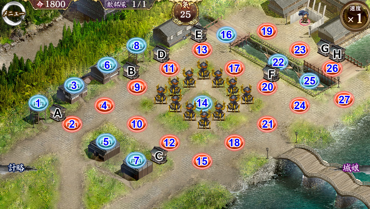 普通と同配置で出陣したら辛勝w天童城は14でストーブ倒したら撤退、山中は24。鎌倉城と鬼ノ城のバフで何とか耐えた。