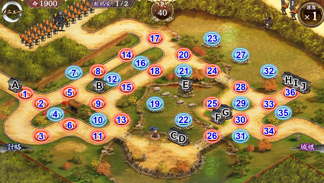 E蔵防衛は鉄砲トークンとかお勧め。短射程の飛行兜しか飛んでこないので、一方的に攻撃してくれる。ただ、攻撃力は足らないので、事前にある程度削っておかないと。 --