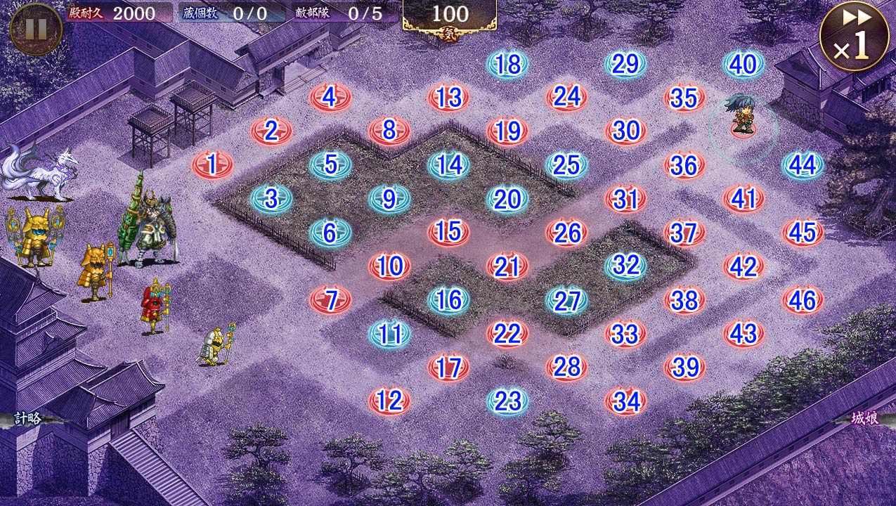 | <妖狐の補足> 妖狐が存在する間、敵軍ユニットが受ける計略ダメージが半減します。 また、妖狐の射程内の殿側ユニットの攻撃、射程上昇効果を無効化します。 妖狐は自身が攻撃を行う度、攻撃と射程が一定割合上昇します。(一定値まで効果重複) |