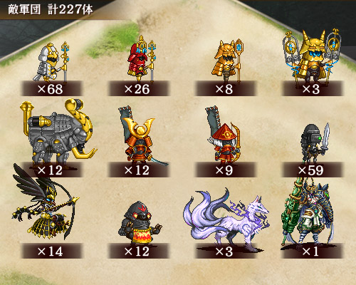 | 強化型鬼形兜は、自身の射程内の敵軍ユニットの 防御無視攻撃によるダメージを30%上昇します。 |