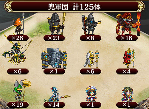敵の城娘は基本的に味方として使うのと全く同じ性能。つまり刀は2体までしか攻撃できない。蔵よりも城娘やトークンのほうが攻撃優先度が高いので、1と3や9と12に置いてしまえば蔵が殴られる心配がないということ --