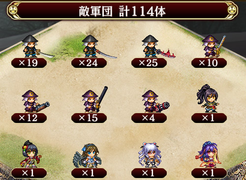 | E,F,?,?,?,?,?,A | 築城アイテム | [築城アイテム] 17~19個 / 合計136~152個 |