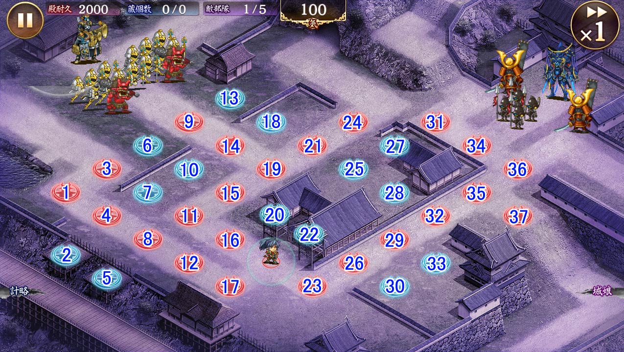 | 伊達政宗超難武神特技『独眼竜奥義』 全ての城娘の射程が20%低下、自身が攻撃を与える度に対象の射程を20低下。 片倉小十郎のみを対象に移動速度と攻撃速度を1.5倍に上昇。 |