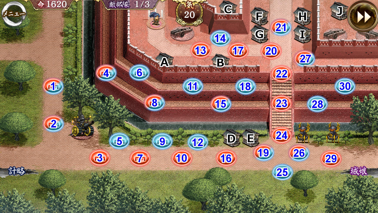 • 計略無しで殿を守るには8の駿府が結構重要っぽいな。計略持ちを使えば殿を守るのは容易だけど、コスト面できつくなる。28の多賀も替えが利き辛いのは同じで、こちらは計略使うタイミングを誤れば蔵が破壊される。 -- 2016-07-10 (日) 23:27:13