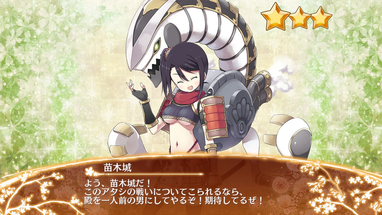 城娘ステータス: 全城娘一覧(刀 | 槍 | 槌 | 盾 | 拳 | 鎌 | 戦棍 | 双剣 | ランス | 弓 | 石弓 | 鉄砲 | 大砲 | 歌舞 | 法術 | 鈴 | 杖 | 祓串 | 本 | 投剣 | 鞭 | 陣貝 | 軍船 | 茶器 | その他 || 平属性 | 平山属性 | 山属性 | 水属性 | 地獄属性 | 無属性)初期ステータス 装備品: 刀 | 槍 | 槌 | 盾 | 拳 | 鎌 | 戦棍 | 双剣 | ランス | 弓 | 石弓 | 鉄砲 | 大砲 | 歌舞 | 法術 | 鈴 | 杖 | 祓串 | 本 | 投剣 | 鞭 | 陣貝 | 軍船 | 茶器 | その他 || 施設 || 消耗品 | 城娘: 特技(攻撃系 / 防御系 / 弱体化他) | 所持特技 | 編成特技 | 大破特技 | 特殊攻撃 | 特殊能力 | 武器切替 | 計略(伏兵以外 / 伏兵) | 都道府県別 | 令制国別 | 季節限定城娘 | 特定カテゴリ |