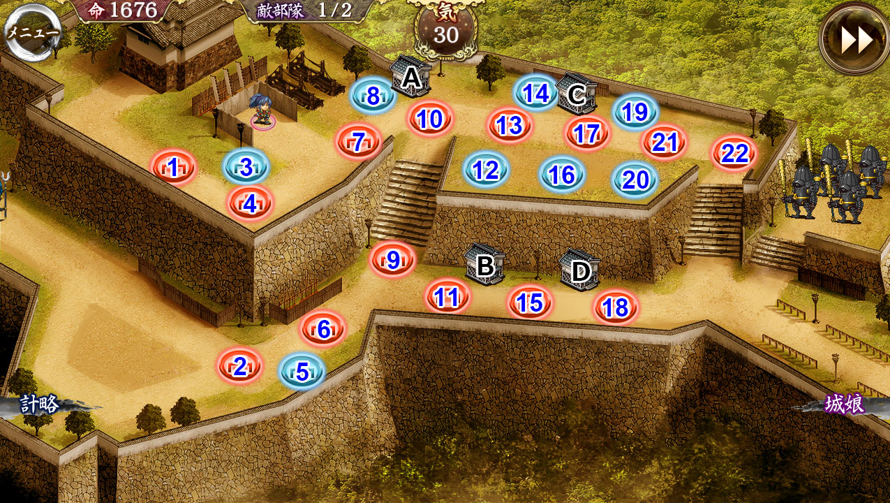 17に小諸城を置いて最大化しておくとラストに来る騎馬兜を足止めしてくれて助かる。 --