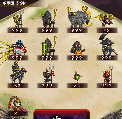 | <無間地獄効果> 無間地獄では『特定の敵』を倒すまで一部の敵が無限に登場します。 この合戦では『閻魔庁』が特定の敵になります。 |