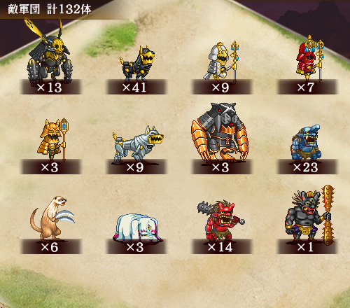 | 1 | 攻撃強化(大) | 全ての敵の攻撃が2倍 |