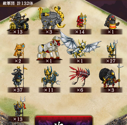 | 1 | 攻撃強化(中) | 全ての敵の攻撃が1.75倍 |
